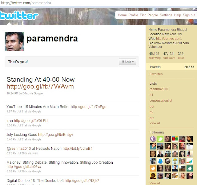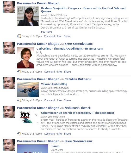 Reshma has partially taken over my Facebook page. When I share a link from Sree's page, you know I have ulterior motives. (Recruited 60 For Reshma 2010)
