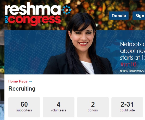 I was not even aware. I just happened by my personal dashboard on the Reshma 2010 website in the course of gathering info for the clean tech event Tuesday, and I saw for the first time that I had recruited 60 people to the cause. Heck, I am impressed. Looks like I can do more for Reshma 2010 by blogging than by making phone calls or knocking doors, all of which are important. All these recruits recruited themselves. They must have come to my blog and signed up on their own. I did not actively solicit, although I do recognize some friends on the list.